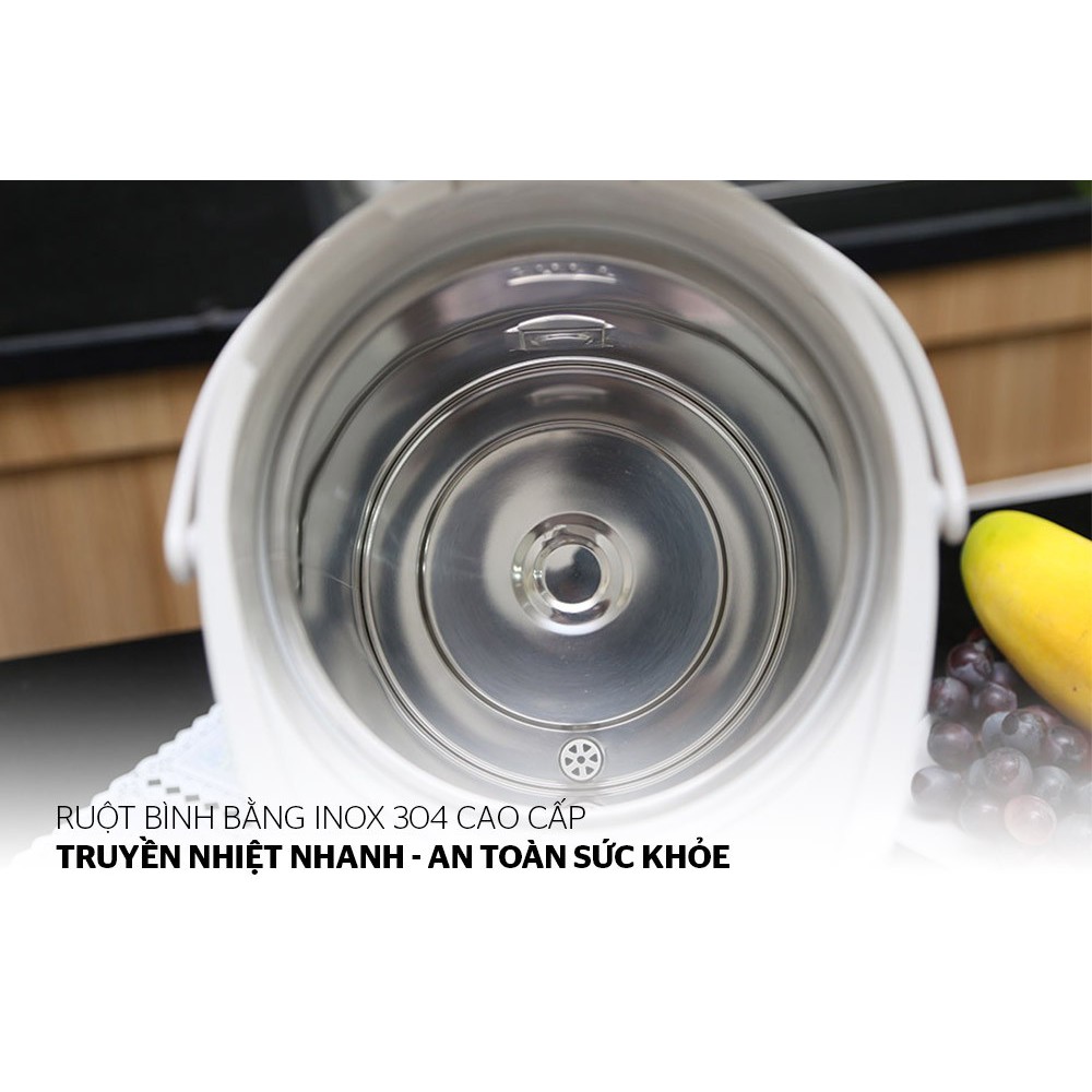 Bình có chức năng giữ ấm ở nhiệt độ lên đến 90 độ C, giúp duy trì nước nóng liên tục trong bình. Bên cạnh đó, bình còn có chức năng tự động đun sôi khi châm thêm nước lạnh hoặc đun nóng đến 100 độ C, nhờ đó bạn sẽ có nước sôi sử dụng trong thời gian nhanh nhất.