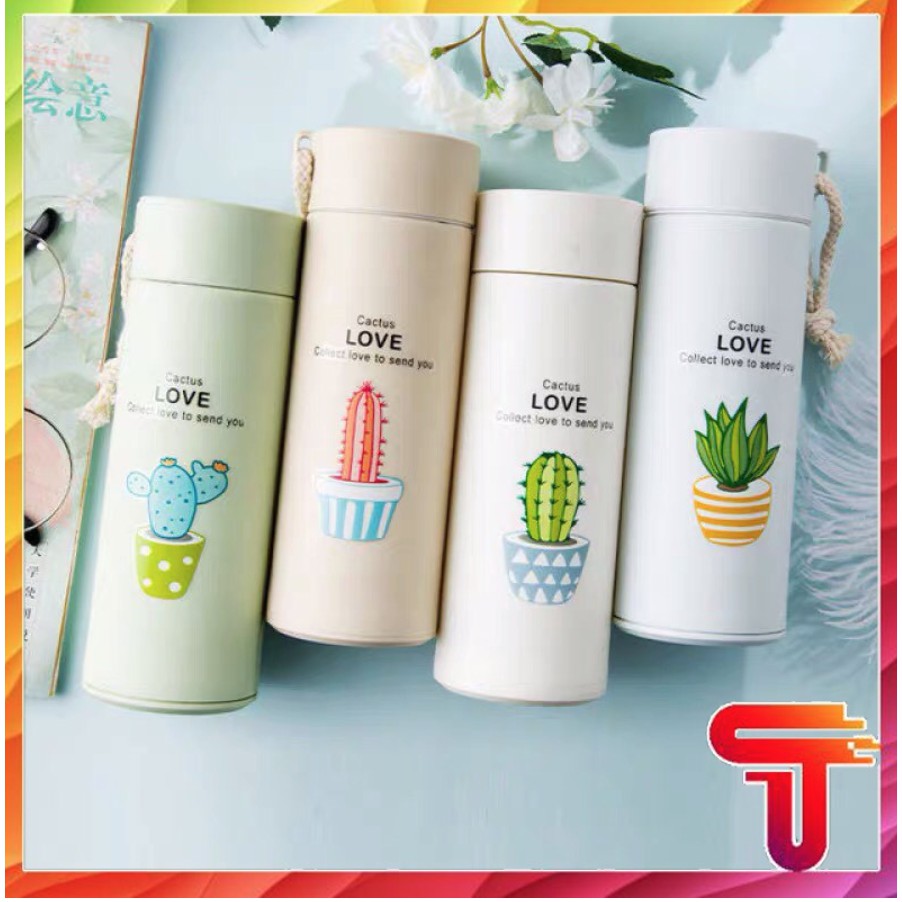 💙💙💙Bình nước thuỷ tinh bọc nhựa Love Cactus 400ml