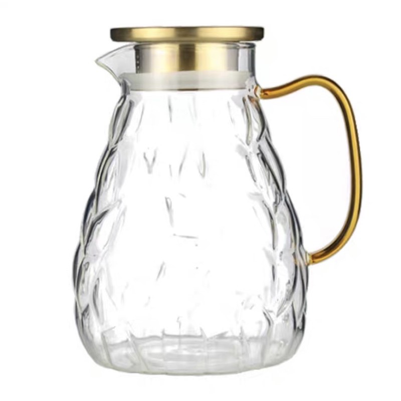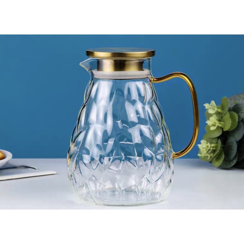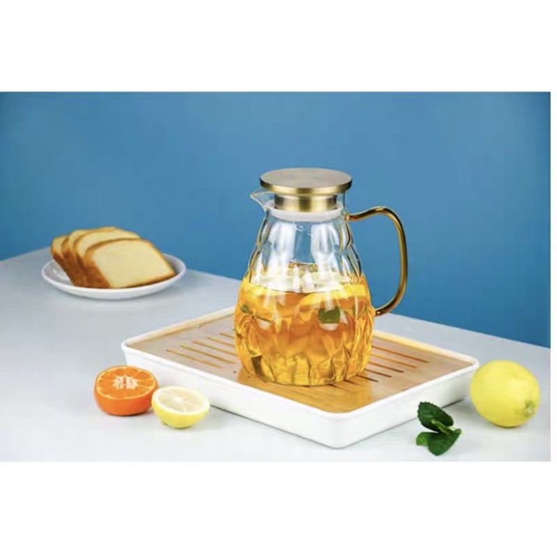 Nhà cửa & Đời sống > Bộ đồ bàn ăn > Bình nước & phụ kiện || Bình thuỷ tinh Borosilicate chịu nhiệt 1900ml thân trám quai vàng cao cấpCòn hàng