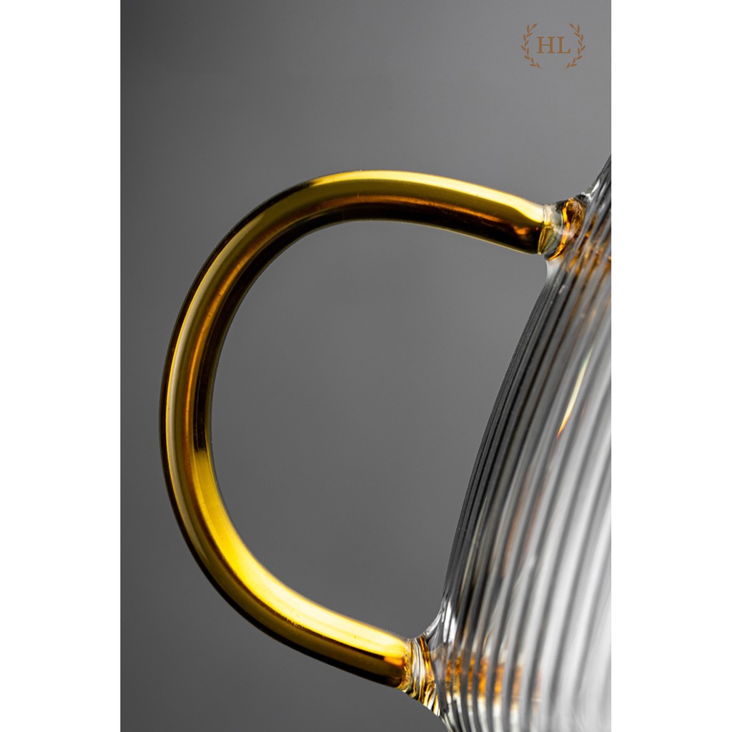 Nhà cửa & Đời sống > Bộ đồ bàn ăn > Bình nước & phụ kiện || Bình thuỷ tinh chịu nhiệt quai vàng vân kẻ sọc chịu nhiệt - chịu lực dáng thẳng | Ấm thủy tinh Borosilicate siêu nhẹCòn hàng