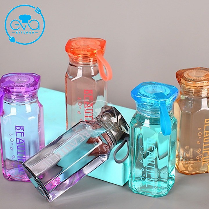 Bình Thủy Tinh Màu Đựng Nước Rhomb In Chữ Kèm Dây Xách Cao CấpMã sản phẩm : 0025001999