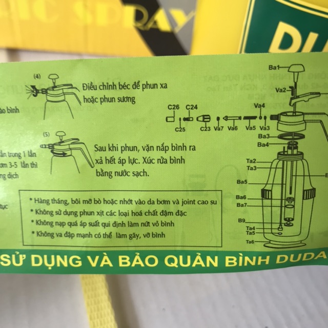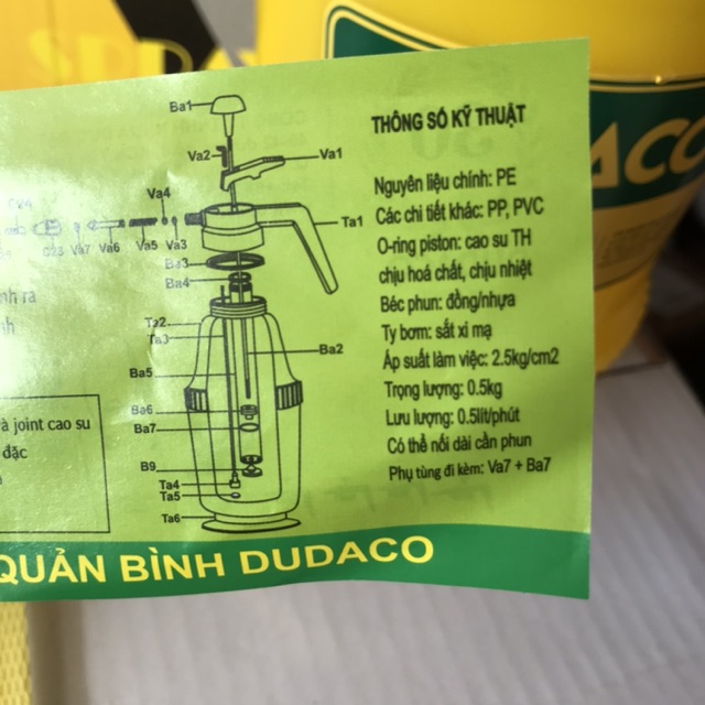 Mô tả: Bình DUDACO 2 lít loại không đế, béc đồng, dùng được với các loại hóa chất, nông dược thông thường.Đặc tính sản phẩm