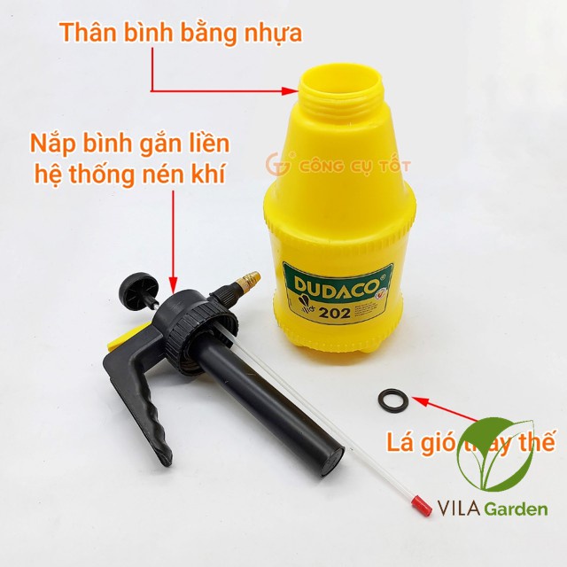 Bình DUDACO 2 lít loại không đế, béc đồng, dùng được với các loại hóa chất, nông dược thông thường.Xuất khẩu Myanmar, Pháp, EU,Best seller tại Việt Nam 2009-2017