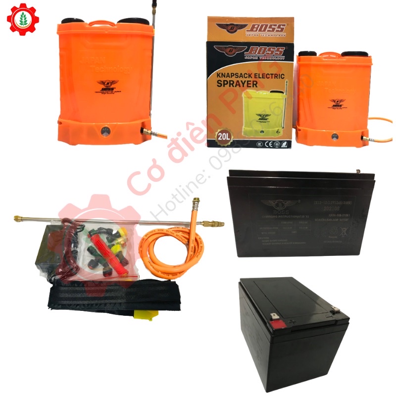 Bình xịt điện phun thuốc trừ sâu BOSS 20L 12V 12AH | 2 bơm | Công nghệ Nhật Bản | Bình phun thuốc
