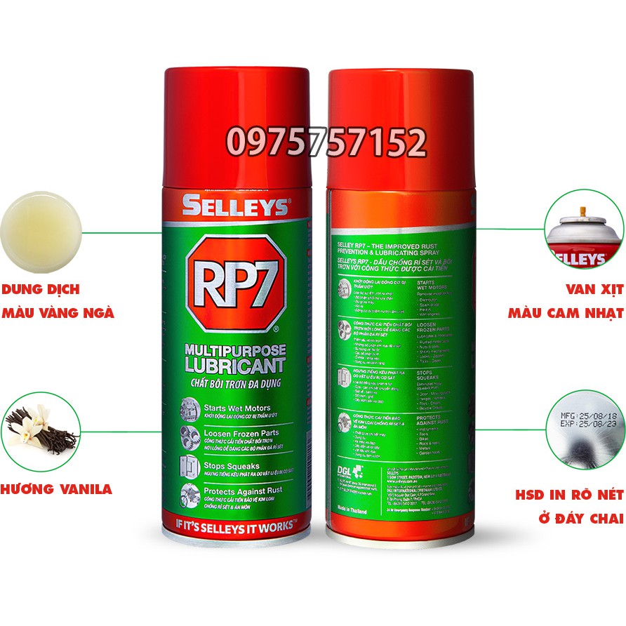 🔥 Dầu chống rỉ sét và bôi trơn đa dụng RP7 chai nhãn mới 350g (300g + thêm 50g)🔥Dầu chống rỉ sét, bôi trơn đa năng Selleys RP7 là một sản phẩm đa năng được sản xuất bởi hãng Selleys với thành phần là một hỗn hợp gồm một loại dầu cao cấp dễ thấm, nhờn với công thức cải tiến và một hỗn hợp đậm đặc chống gỉ sét hiệu quả.