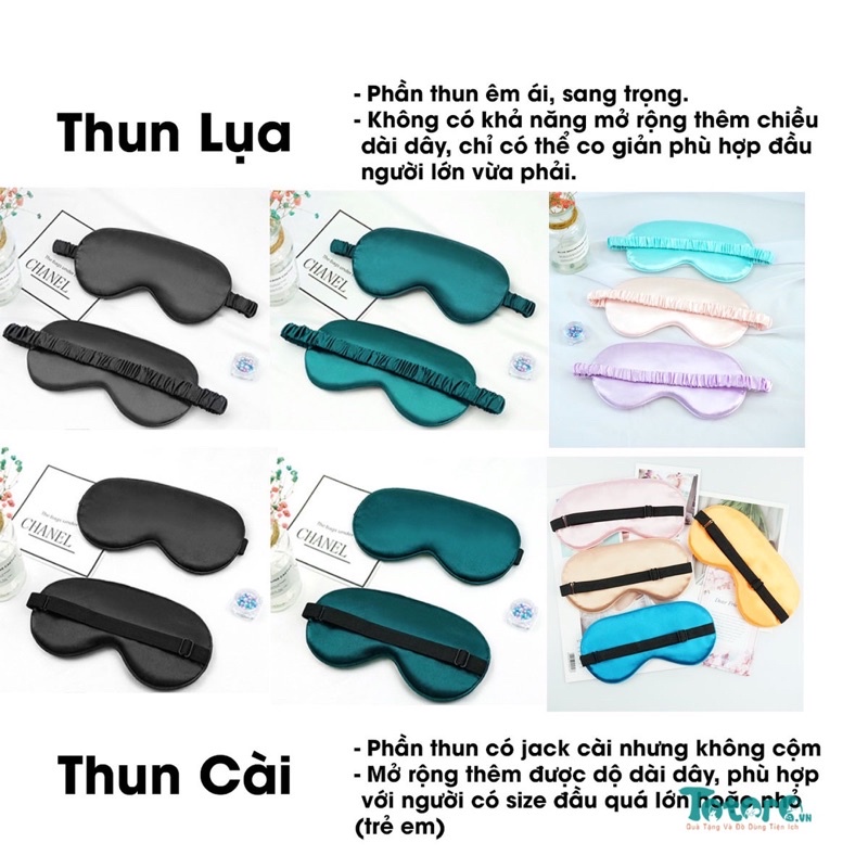 + Bịt mắt ngủ Lụa cao cấp dây thun cài: phần dây bằng thun co giản.