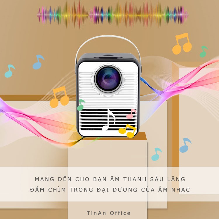 [Bluetooth-1080P thực] Máy Chiếu Smart Mini Tích Hợp - Loa Stereo, Độ Phân Giải Cao, Chiếu Lên Đến 120 Inch