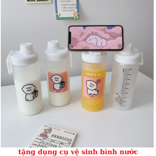 Bnh đựng nước cute bình nước 500ml CÓ ỐNG HÚT LOẠI TỐT - THỦY TINH