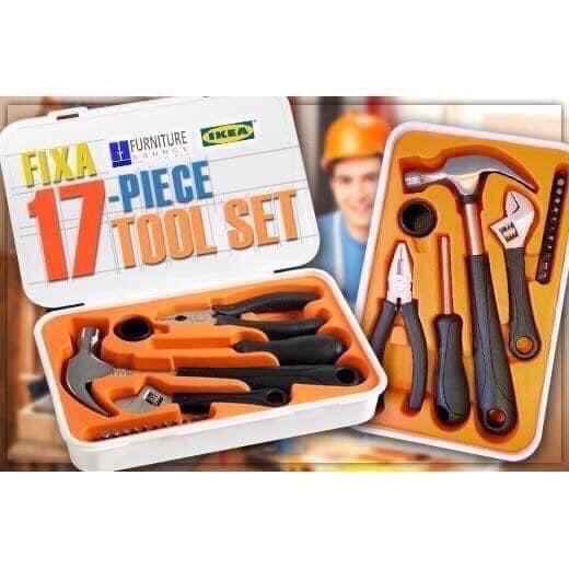Dụng cụ sửa chữa gia đình 17 món IKEA FIXA gồm 17 dụng cụ như: búa, kìm, tua vít, cờ lê,... và 13 đầu tua vít với nhiều kích thước khác nhau ...