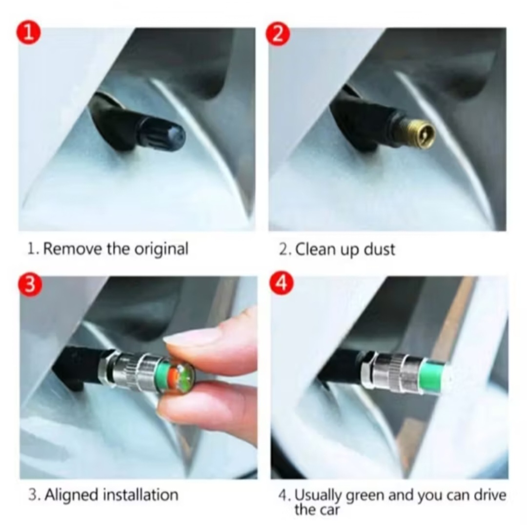 Bộ 4 nắp chụp van đo áp xuất lốp ô tô cảnh báo an toàn
