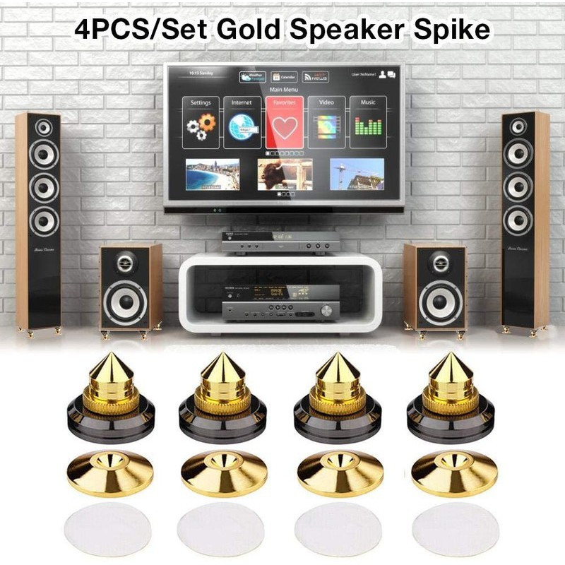BỘ 4 CHÂN ĐẾ ĐỠ LOA ĐẦU NHỌN MẠ VÀNG HỢP KIM CHỐNG RUNG CHUYÊN DỤNGĐƯỢC LẮP ĐẶT DƯỚI LOA, NÓ CÓ THỂ BẢO VỆ SÀN GỖ CỨNG HOẶC SÀN GẠCH KHÔNG BỊ TRẦY XƯỚC VÀ HƯ HỎNG,