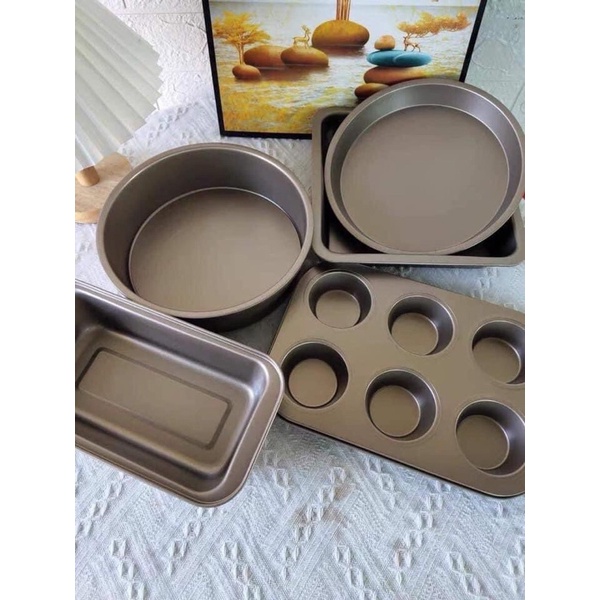 Nhà cửa & Đời sống > Dụng cụ nhà bếp > Lò nướng & phụ kiện || BỘ 5 KHAY NƯỚNG BẰNG THÉP KHÔNG DÍNH MÀU VÀNGCòn hàng