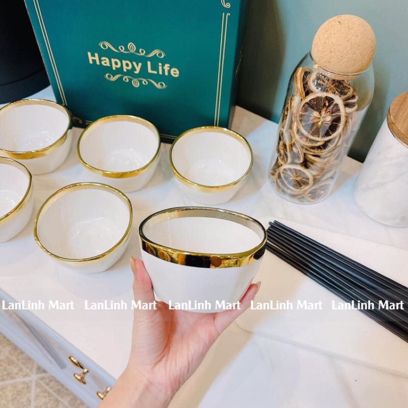 Nhà cửa & Đời sống > Bộ đồ bàn ăn > Tô || BỘ 6 BÁT SỨ VIỀN VÀNG KÈM 6 ĐÔI ĐŨA ĐEN,CAO CẤP PHONG CÁCH,SANG TRỌNGCòn hàng