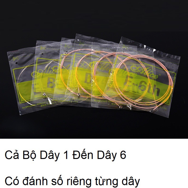 Sản phẩm mới 100% một bộ sản phẩm có 6 dây chất liệu thép bọc đồng, âm thanh sáng và tiếng vang, dây cỡ .011-.052 là size dây phổ thông phù hợp với mọi loại đàn, lực căng không quá lớn nên bấm nhẹ ít đau tay.Thông số Kĩ Thuật