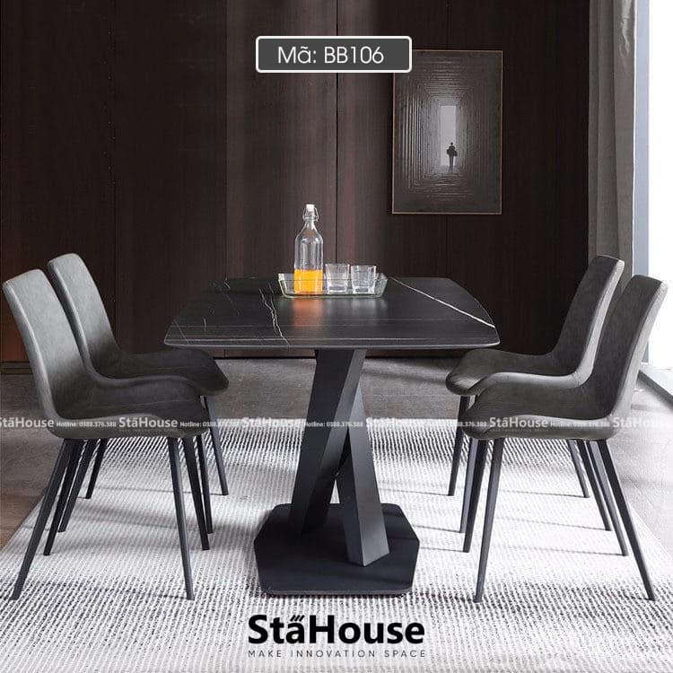 BỘ BÀN ĂN ĐÁ CERAMIC NHẬP KHẨU - BB106 Phong Cách Bắc Âu Đường Nét Tinh Tế, Bàn Ăn 4 Ghế 6 Ghế - Stahouse
