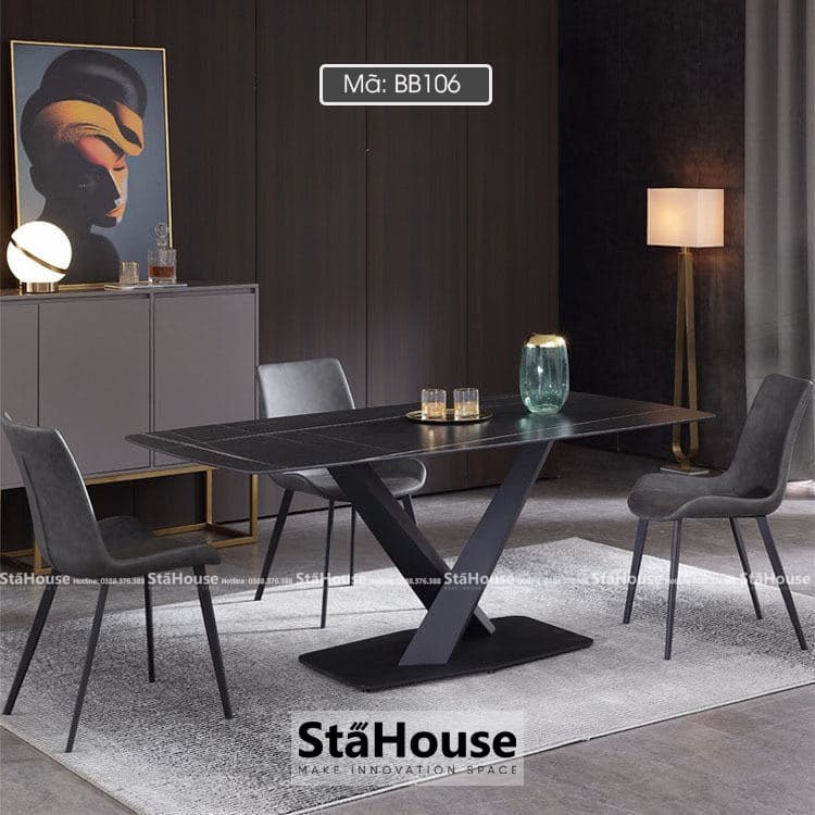 Giới thiệu BỘ BÀN ĂN ĐÁ CERAMIC NHẬP KHẨU - BB106 Phong Cách Bắc Âu Đường Nét Tinh Tế, Bàn Ăn 4 Ghế 6 Ghế - Stahouse