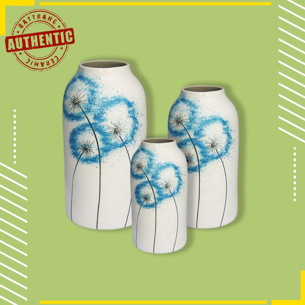 BỘ BÌNH TRỤ VẼ HOA, SẢN PHẨM THỦ CÔNG, SẢN XUẤT TẠI XƯỞNG GỐM SỨ AUTHENTIC BAT TRANG