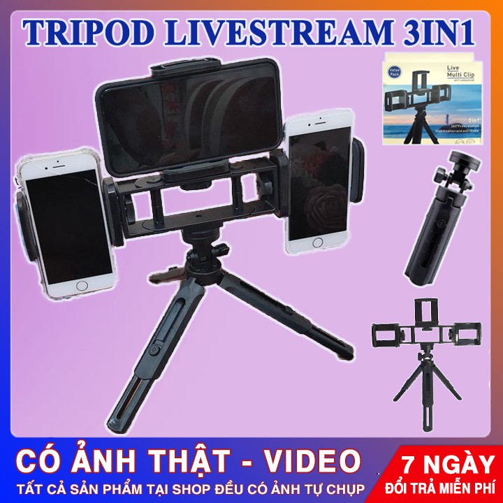 BỘ CHÂN ĐỠ LIVESTREAM + TRIPOD | Quay Video Cùng Lúc 3 Điện Thoại - Đế Giữ Siêu Chắn Chắn | Cam Kết Giống Mô Tả - 25001