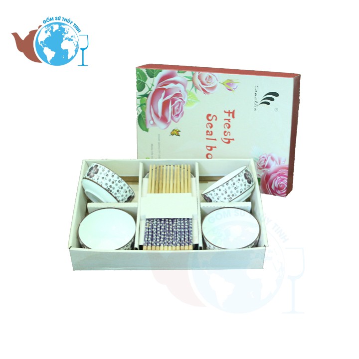 - BỘ CHÉN SỨ ĐŨA HOA VĂN NHẬT BẢN bao gồm : 6 chén cơm ( bát ) , 6 đôi đũa