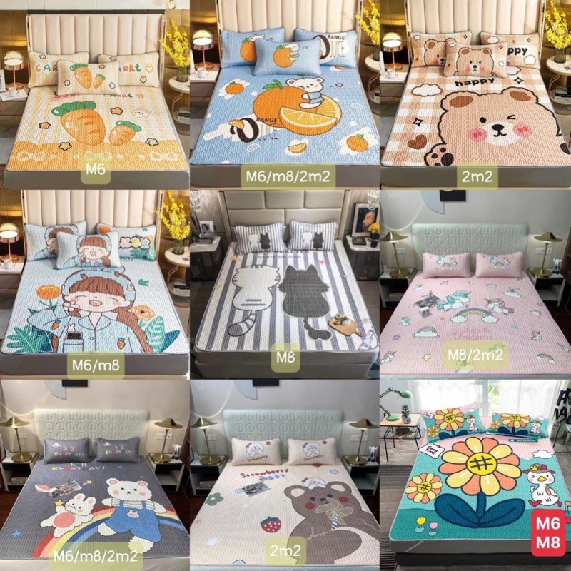 BỘ CHIẾU CAO SU 5D / CHIẾU ĐIỀU HOÀ kèm 2 vỏ gối nằm MẪU MỚI NHẤT (mẫu Hoạt hình ngộ nghĩnh)-> được chọn mẫu