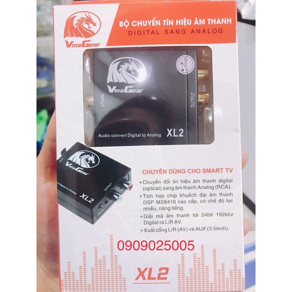 BỘ CHUYỂN TÍN HIỆU ÂM THANH OPTICAL VINA XL2OPTICAL VINA XL2 là bộ chuyển đổi tín hiệu âm thanh kỹ thuật số từ cổng Coaxial (đồng trục) hoặc cổng Optical (quang) trên TV thế hệ mới à thiết bị Media Player sang tín hiệu âm thanh Analog 2 kênh cổng L/R. OPTICAL VINA XL2 được tích hợp chip khuếch đại âm thanh DSP MS8416 thế hệ mới giúp nâng tiếng lớn hơn à lọc nhiễu tiếng trong hơn, tốt hơn, chuyên dùng cho mục đích hát karaoke, nghe nhạc, phát loa phát bộ âm ly sóng động hơn.