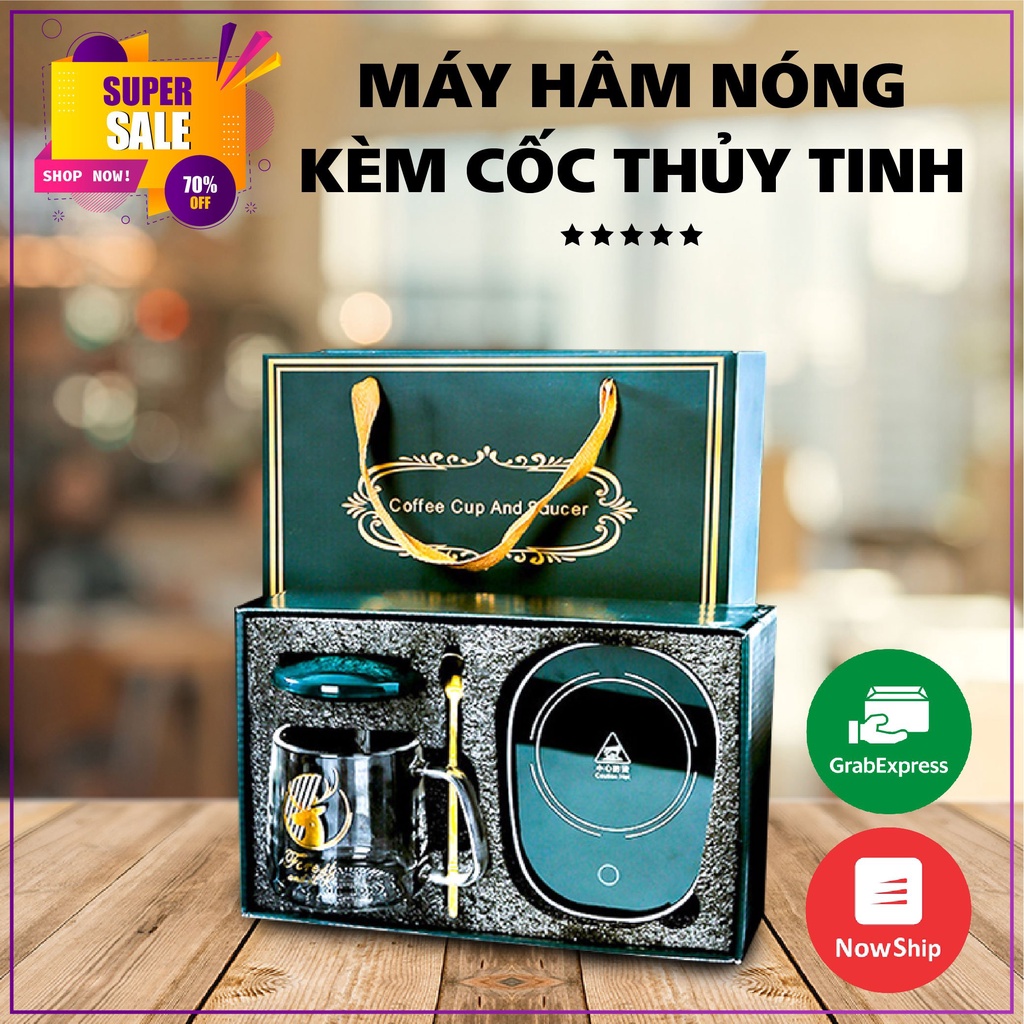 BỘ cốc hâm nóng Ly thủy tinh kèm đế điện hâm nóng cốc uống cafe