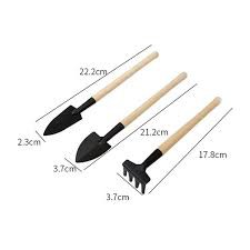 - Bộ dụng cụ mini làm vườn 3 món gồm 1 xẻng, 1 xúc, 1 cào, sử dụng tiện lợi, kiểu dáng đẹp, nhỏ gọn. Chúng được làm bằng sắt sơn tĩnh điện rất cứng bạn tha hồ đào, xới, trộn không bị gẫy. Đồng thời tay cầm được bao bọc bằng gỗ điều này giúp bạn không bị trơn tuột trong quá trình làm vườn.