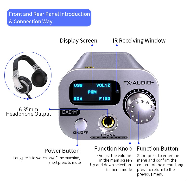 Giới thiệu BỘ DAC GIẢI MÃ ÂM THANH FX-AUDIO DAC-M1 DECODER BLUETOOTH 5.0 APTX ESS9038Q2M 32BIT 768KHZ DSD512 USB DAC HEADPHONE