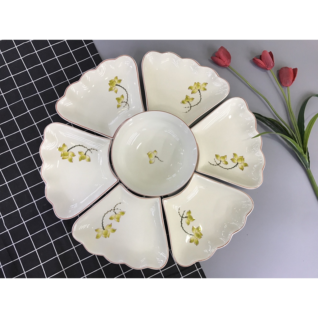 7 món gồm : 6 cánh đĩa và 1 bát tô ở giữa