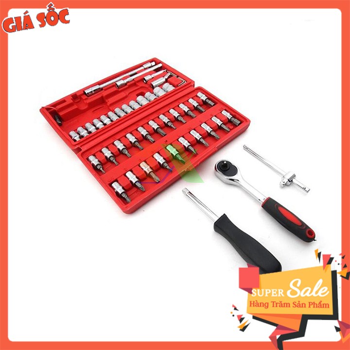 BỘ DỤNG CỤ 46 MÓN MỞ BULÔNG ỐC VÍT SỬA XE MÁY Ô TÔ CAO CẤP