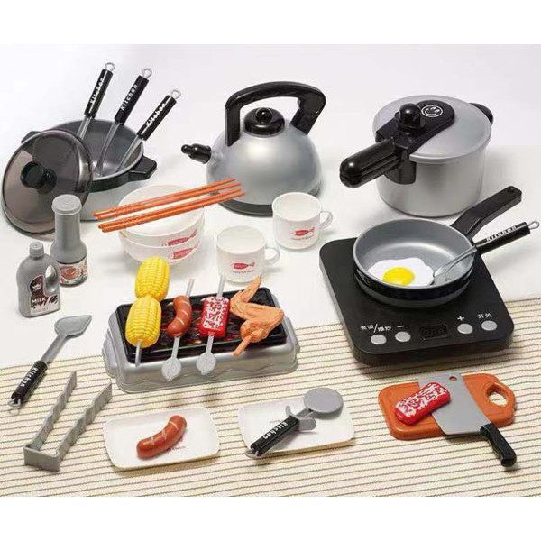 ☑ Chất liệu nhựa an toàn ♻️ ☑ Bếp từ sử dụng pin, có đèn led hiển thị nhiệt độ. Nút bấm tăng giảm như thật. Số hiển thị trên màn led ☑ Nồi áp suất có chốt khóa như nồi thật nha 😉