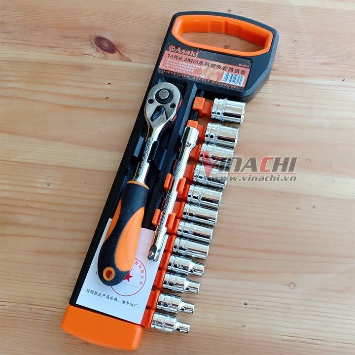 BỘ DỤNG CỤ THÁO VÍT ASAKI 14 CHI TIẾT 6.35MM AK-9818 hàng cao cấp