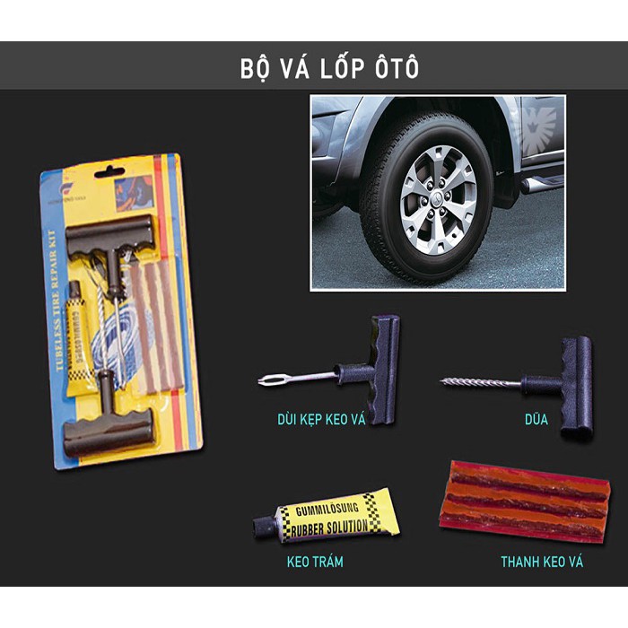 BỘ DỤNG CỤ VÁ VỎ XE KHÔNG RUỘT KHẨN CẤP
