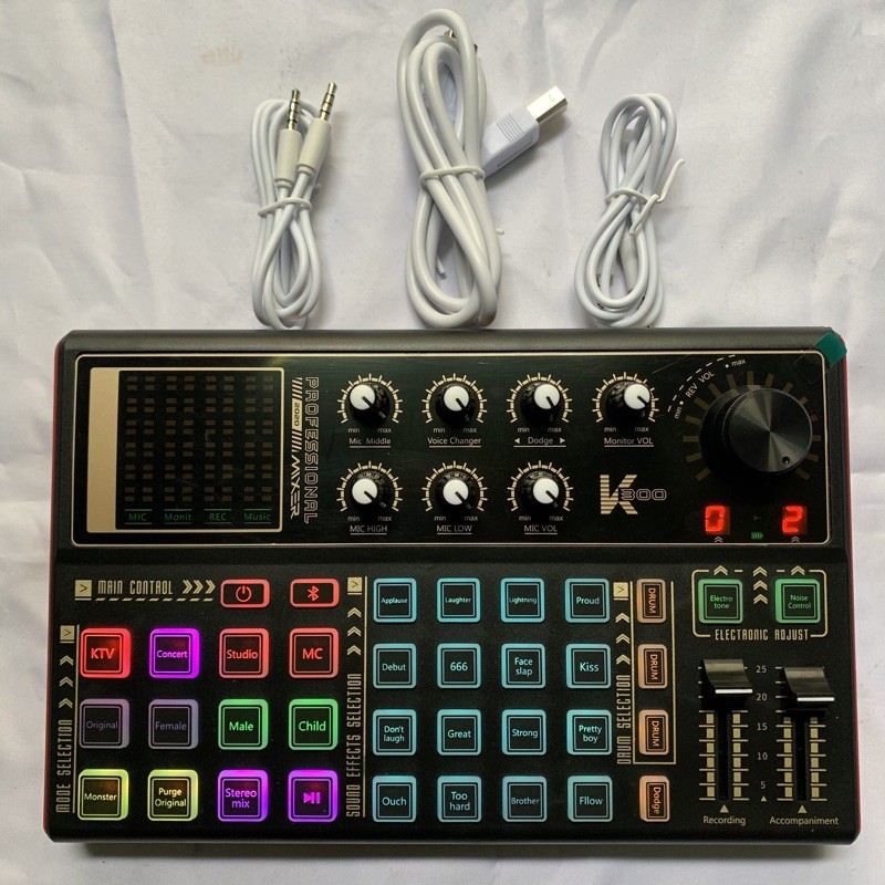 Các nút bấm và núm chỉnh của soundcard SK300 hoạt động hiệu quả và bền. Có các chức năng chỉnh tần số giọng, bass trable, âm lượng giọng, âm lượng nhạc nền… Ngoài ra còn có các núm chỉnh tiếng vang (giọng vang nhiều hay vang ít – echo) và các nút bấm chỉnh hiệu ứng giọng. Sound card SK300 có thể đổi giọng người dùng thành giọng trẻ con, giọng phụ nữ, ông già. Thích hợp cho việc live stream trên các nền tảng như facebook, tiktok, bigo…