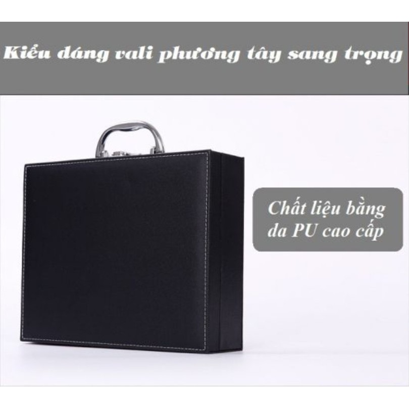 Bộ khui Lux open mở vang chuyên nghiệp gồm vali da và 9 phụ kiện:- 01 dụng cụ mở nút chuyên nghiệp