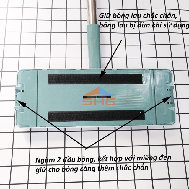 ❅ Chất liệu bông lau: Sợi microfiber dệt khít giúp lau sạch hơn. Mặt sau có 6 lỗ ngàm bông lau (tức ngàm bông lau được 2 đầu) giúp bông ổn định và chắc chắn hơn