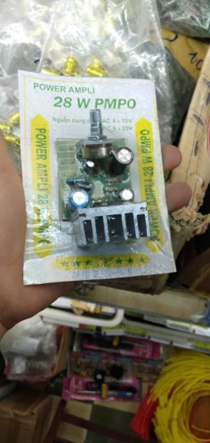 CHI TIẾT SẢN PHẨMBo POWER AMPI 28W PMPO .Nguồn cung cấp tử 6VDC đến 20 VDC có bảo vệ cực tính nguồn ngoài ra mạch có thể hoạt động với điện xoay chiều từ 4VAC đến 15VAC .Dải thông 20Hz-20KHz .Loa 4 ôm -8 ôm .Độ nhạy đầu vào 1vp-p .Tuỳ theo nguồn cung cấp ngõ ra đạt được từ 10W đến 20W