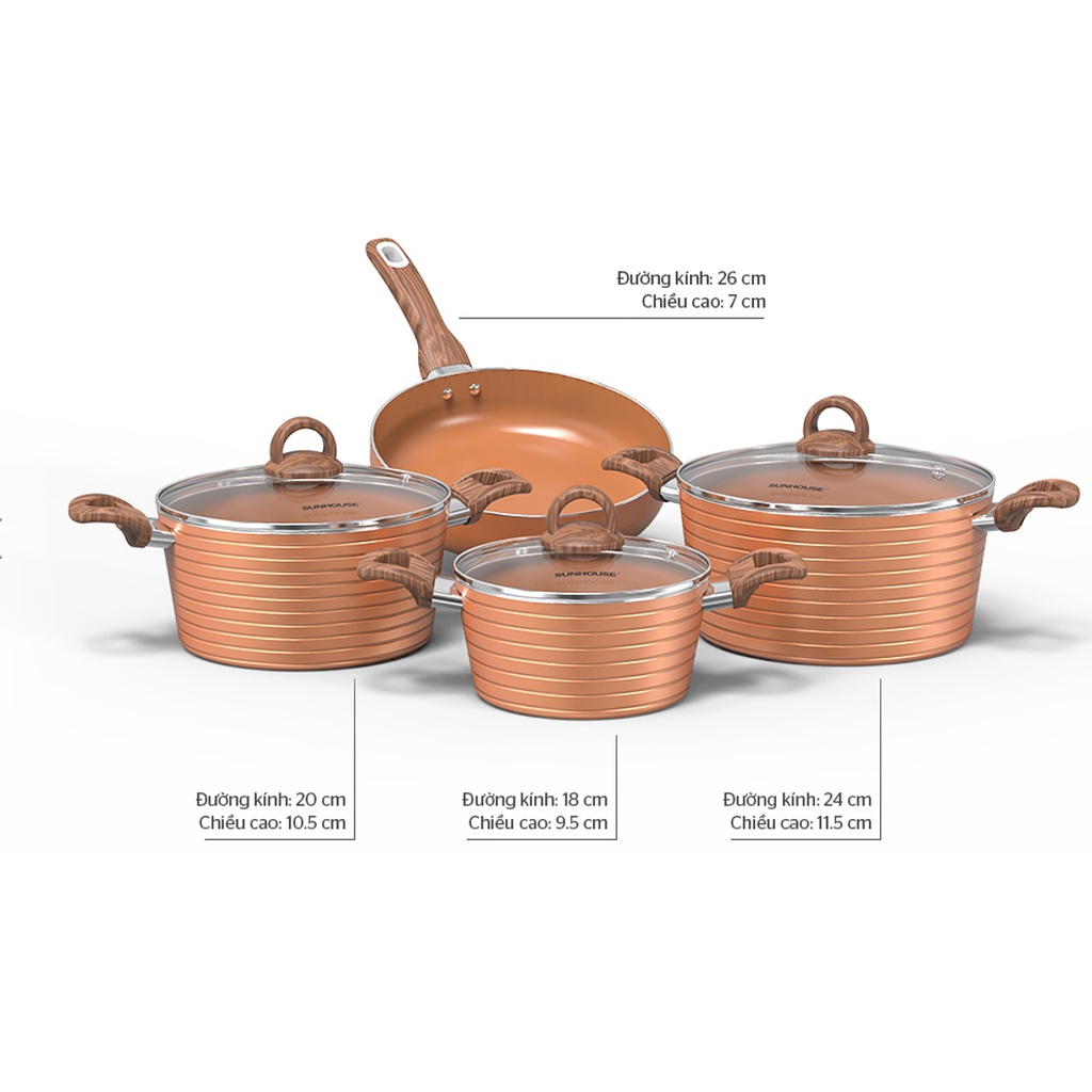 Nhà cửa & Đời sống > Dụng cụ nhà bếp > Chảo || BỘ NỒI CHẢO CHỐNG DÍNH ĐÁY TỪ SUNHOUSE SHG2004MCACòn hàng