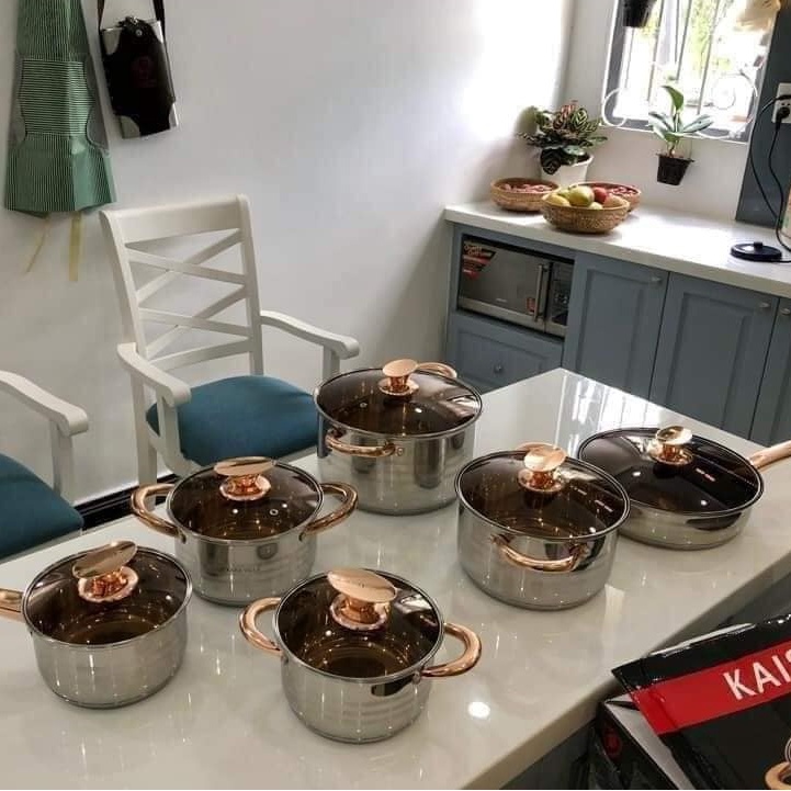 Nhà cửa & Đời sống > Dụng cụ nhà bếp > Nồi || BỘ NỒI CHẢO ĐỨC ĐÁY TỪ 5 LỚP 6 MÓN VUNG KÍNH ANGELBERG/ CHEF&CHEF/ KAISA VILLA 12 CHI TIẾTCòn hàng