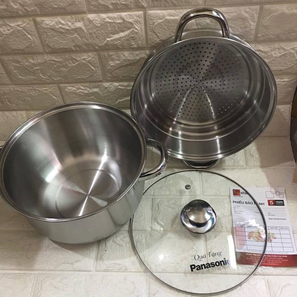 BỘ NỒI XỬNG HẤP PHI 24CM – QUÀ TẶNG TỪ PANASONIC– Bộ nồi xửng hấp inox Fivestar được chế tạo từ inox nhập khẩu Hàn Quốc, có độ sáng bóng và độ bền cao.
