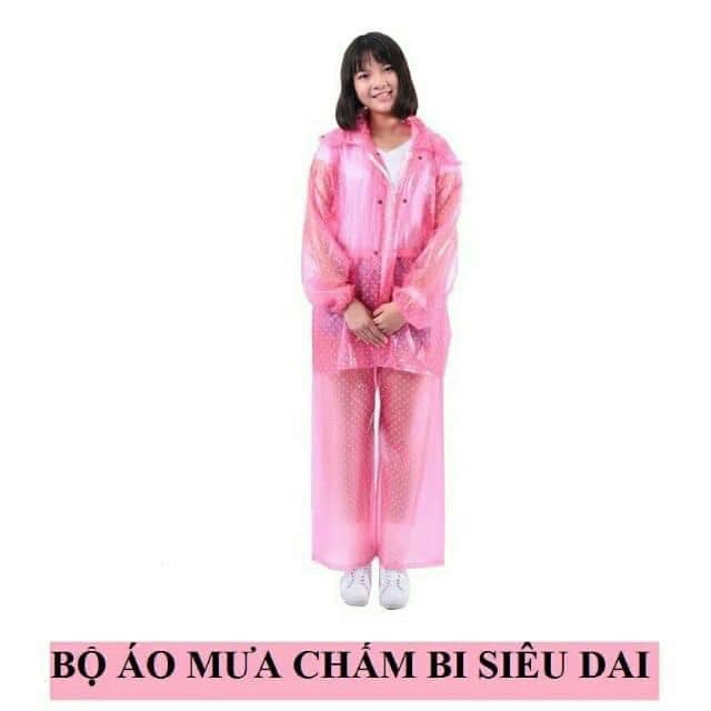 BỘ QUẦN ÁO MƯA CHẤM BI NGƯỞI LỚN SIÊU DAI, CHỐNG THẤM NƯỚC
