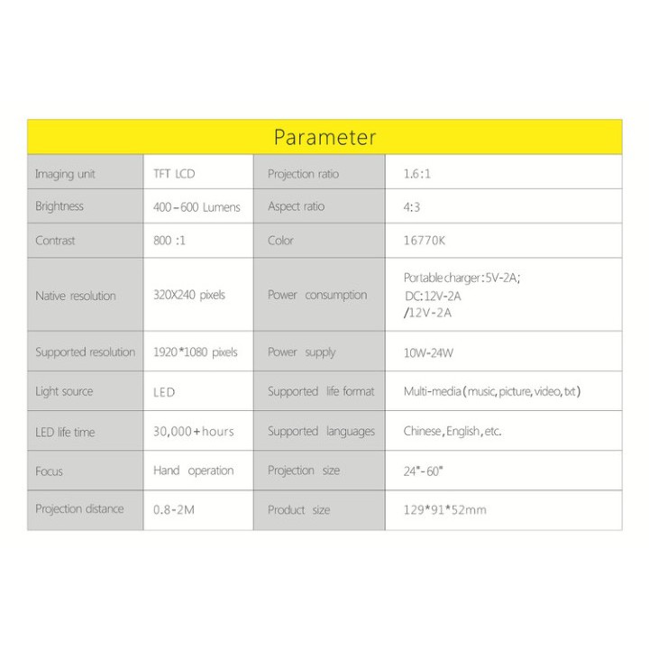 BỘ SẢN PHẨM MÁY CHIẾU MINI LCD LED CS03 DÙNG CHO ĐIỆN THOẠI ANDROID, IOS, MÁY TÍNH BẢNG - CS03 + ANYCASTCÔNG NGHỆ HÌNH ẢNH LCD ĐỘ TƯƠNG PHẢN: 800: 1