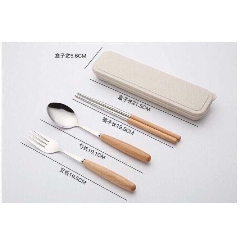 🥢 Bộ gồm đũa, thìa và dĩa inox rất đẹp cán gỗ sồi, đựng trong 1 hộp nhựa lúa mạch sang trọng. Dùng mang cơm đi làm, mang đi du lịch hay picnic tiện lợi.