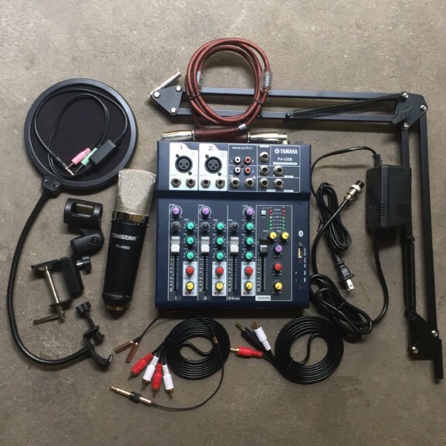 Trọn bộ Mixer F4 -Yamaha + Micro cao cấp pc k600 hát liver stream, hát karaoke gia đình gồm:
