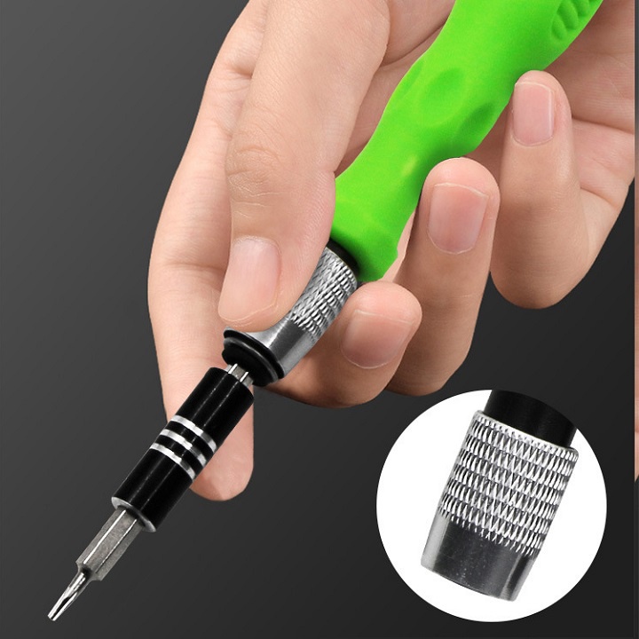 • • Trên thân của tay cầm còn có mấu chống trơn trượt, có gắn nam châm, hít chặt mũi tua vít.Bộ Tua Vít Đa Năng Tua Vít 32 Trong 1 mang lại cho bạn nhiều tiện lợi khi sửa chữa máy móc hay các thiết bị điện tử cỡ nhỏ trong gia đình. Bộ tua vít với đầu tua vít được làm từ chất liệu thép không gỉ nên rất bền chắc. Sản phẩm có nhiều kiểu đầu vít khác nhau như: đầu dẹt, tam giác, lục giác, 3 cạnh, 4 cạnh, 5 cạnh và 6 cạnh, mỗi dạng đều có đủ các cỡ từ lớn đến nhỏ nên rất dễ dàng cho bạn trong việc sửa chữa đồ đạc.