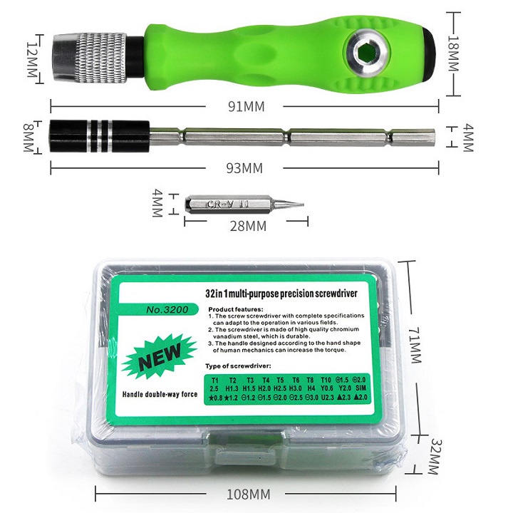 • Với tính năng ưu việt, Bộ Tua Vít Đa Năng Tua Vít 32 Trong 1 mang đến sự tiện dụng cho gia đình bạn mỗi khi lắp ráp các thiết bị hay giải quyết sự cố hỏng hóc nhỏ bất ngờ ở quạt điện, tủ lạnh, ti vi,điện thoại…. nhỏ gọn, tiện lợi và lịch sự.