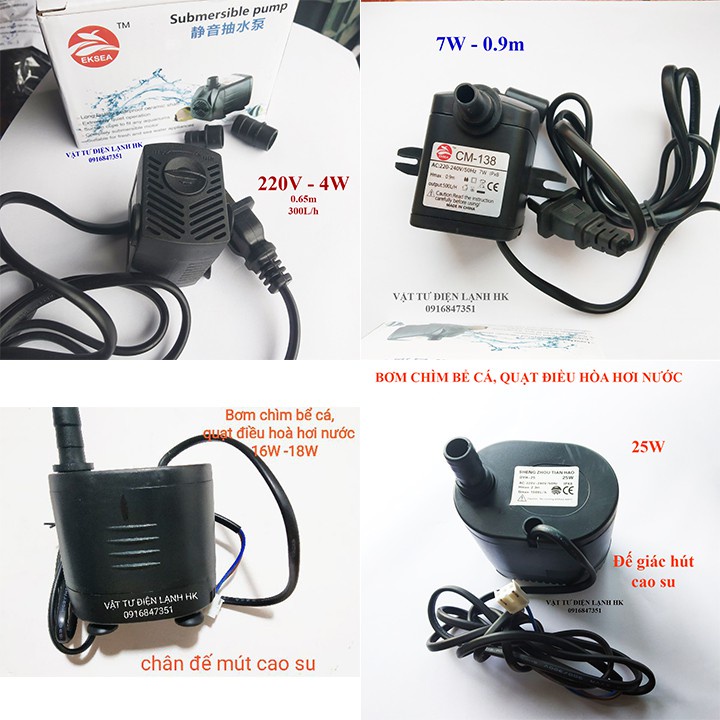 Bơm chìm mini 4W 7W 16W 18W 25W - 220V quạt điều hoà hơi nước - bể cá thủy cảnh