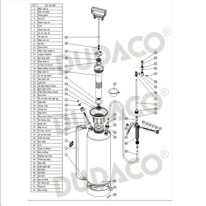 * Tên sản phẩm: Bộ bơm bình xịt cầm tay* Là bộ bơm dùng để thay thế cho bình xịt 4 và 8 lít Dudaco.