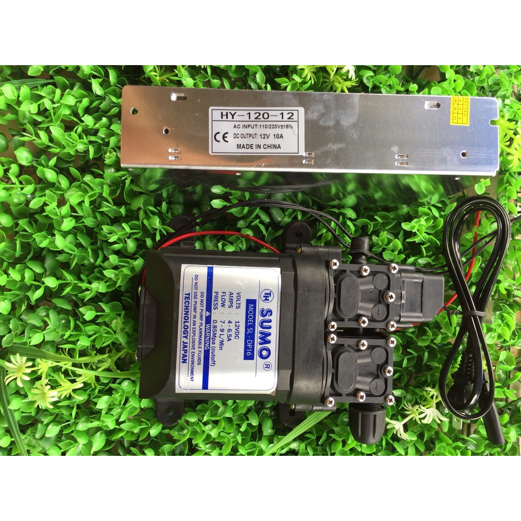 Bơm đôi SUMO tăng gấp đôi áp lực Lưu lượng nước 9L/phút Nguồn tổ ong 12V 10A Tặng chuyển ống ra phun sương