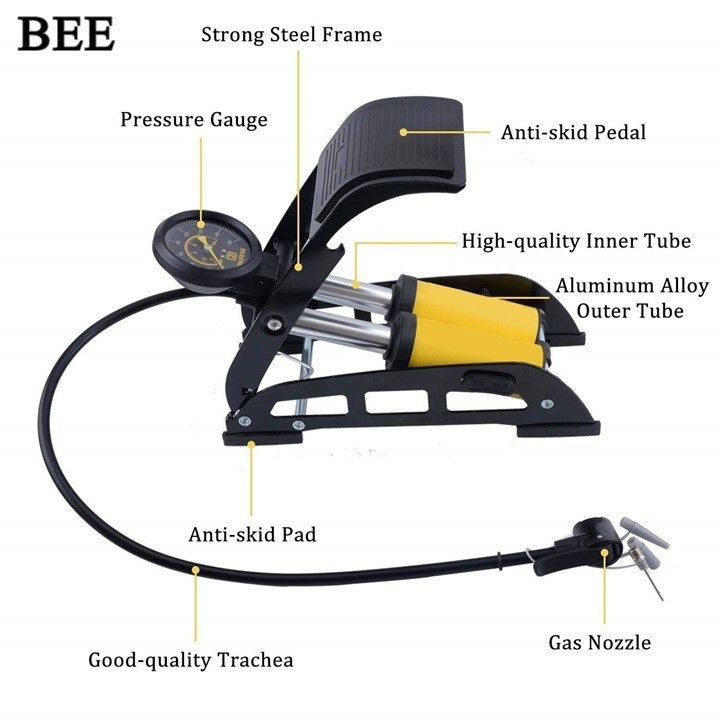 Bơm hơi xe 2 pittong BEE J44B chính hãng được thiết kế vỏ bọc cao su tại chân đế bơm. Giúp tăng khả năng ma sát, đảm bảo an toàn tuyệt đối mỗi khi bơm. Không những thế nó còn giúp giảm sức lực trong quá trình đạp bơm. Bơm rất dễ sử dụng, có độ bền cao. Bơm có thể gấp gọn gàng mang theo một cách dễ dàng và thuận tiện. Yên tâm trên mọi nẻo đường, không sợ lốp xì hơi.